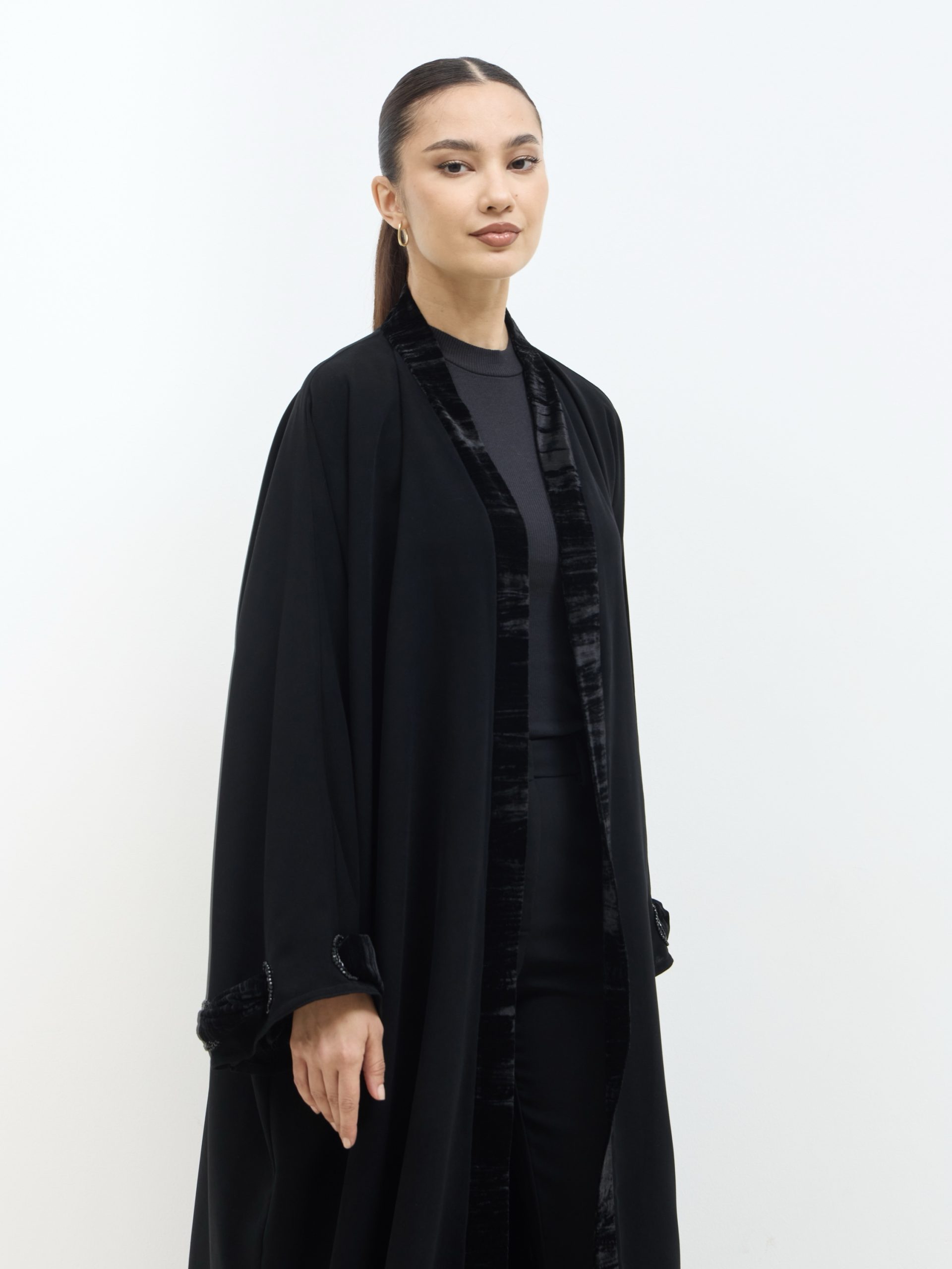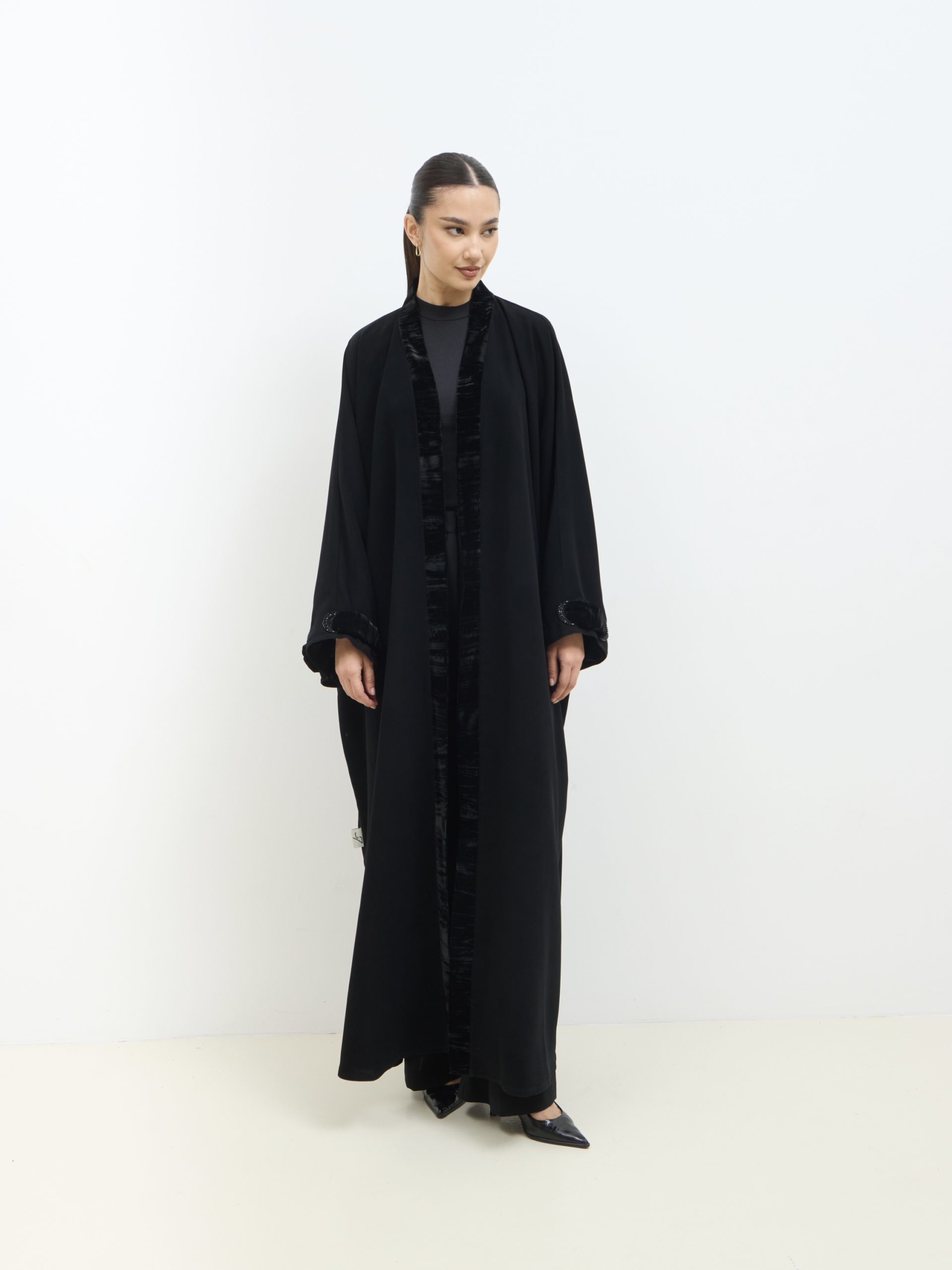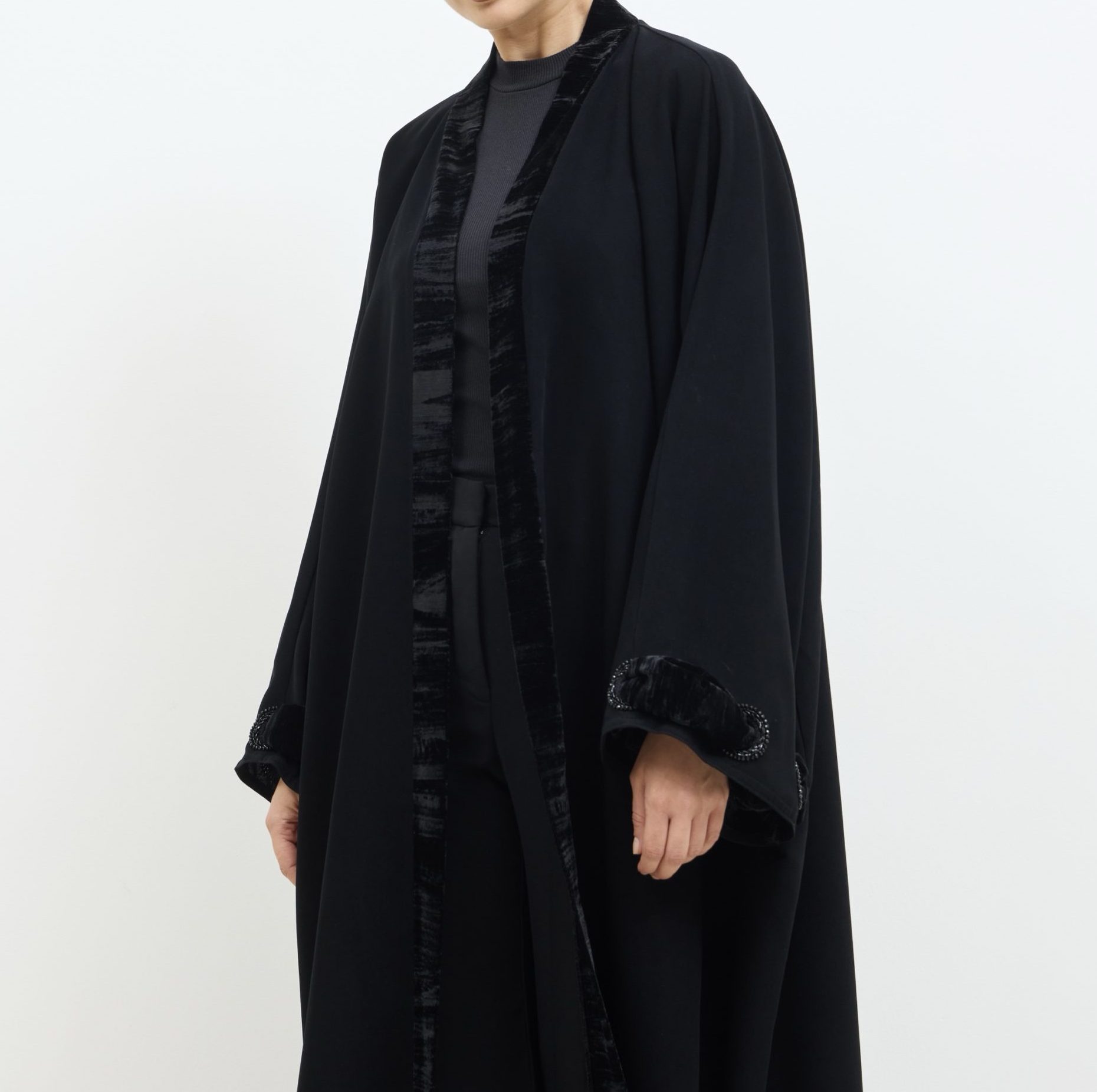 عباية كوبرا فيتنامي نص فراشة، بحواف مخمل ولمسات شك وخرز ناعمة، أنيقة وراقية للمناسبات.