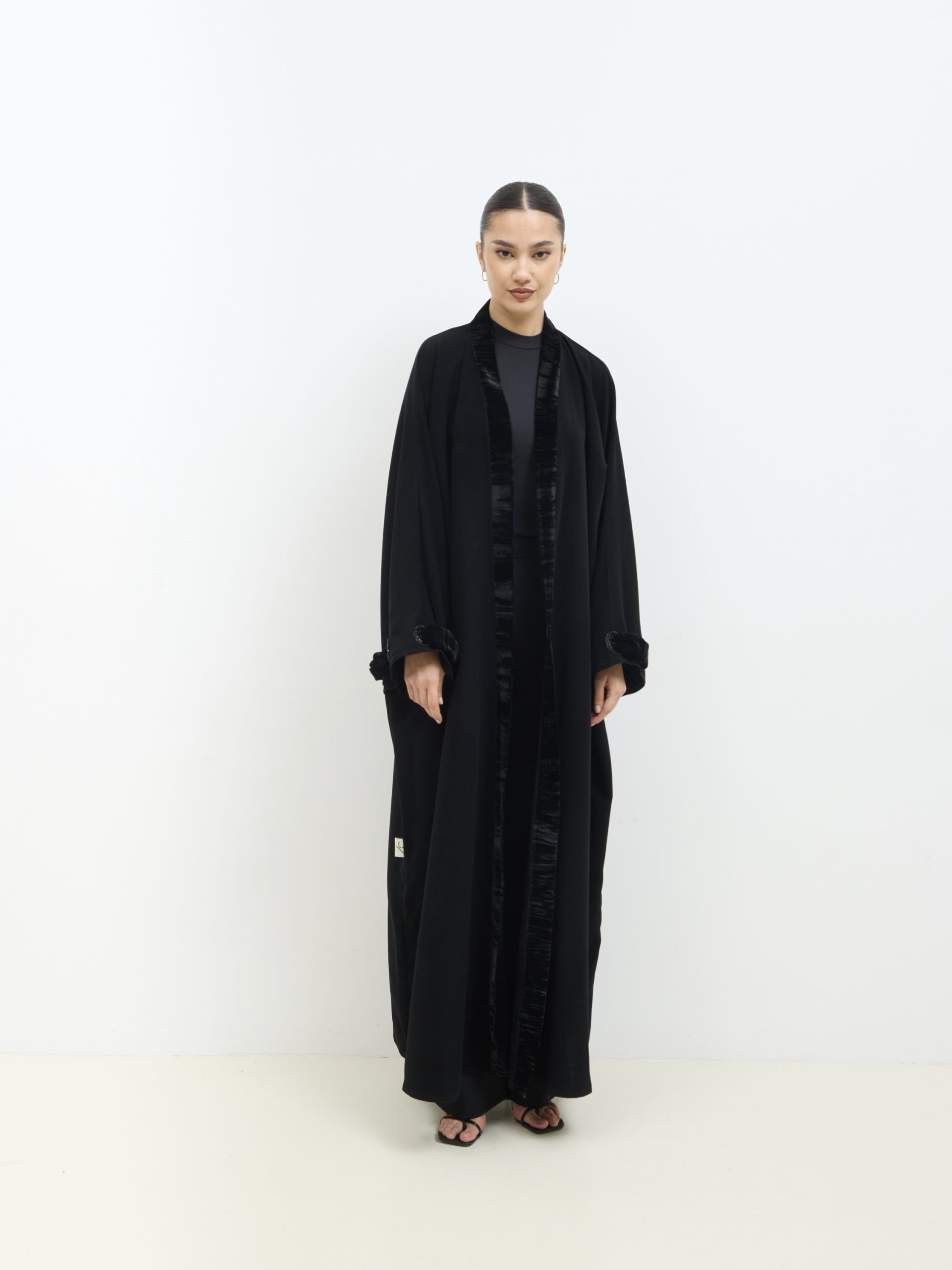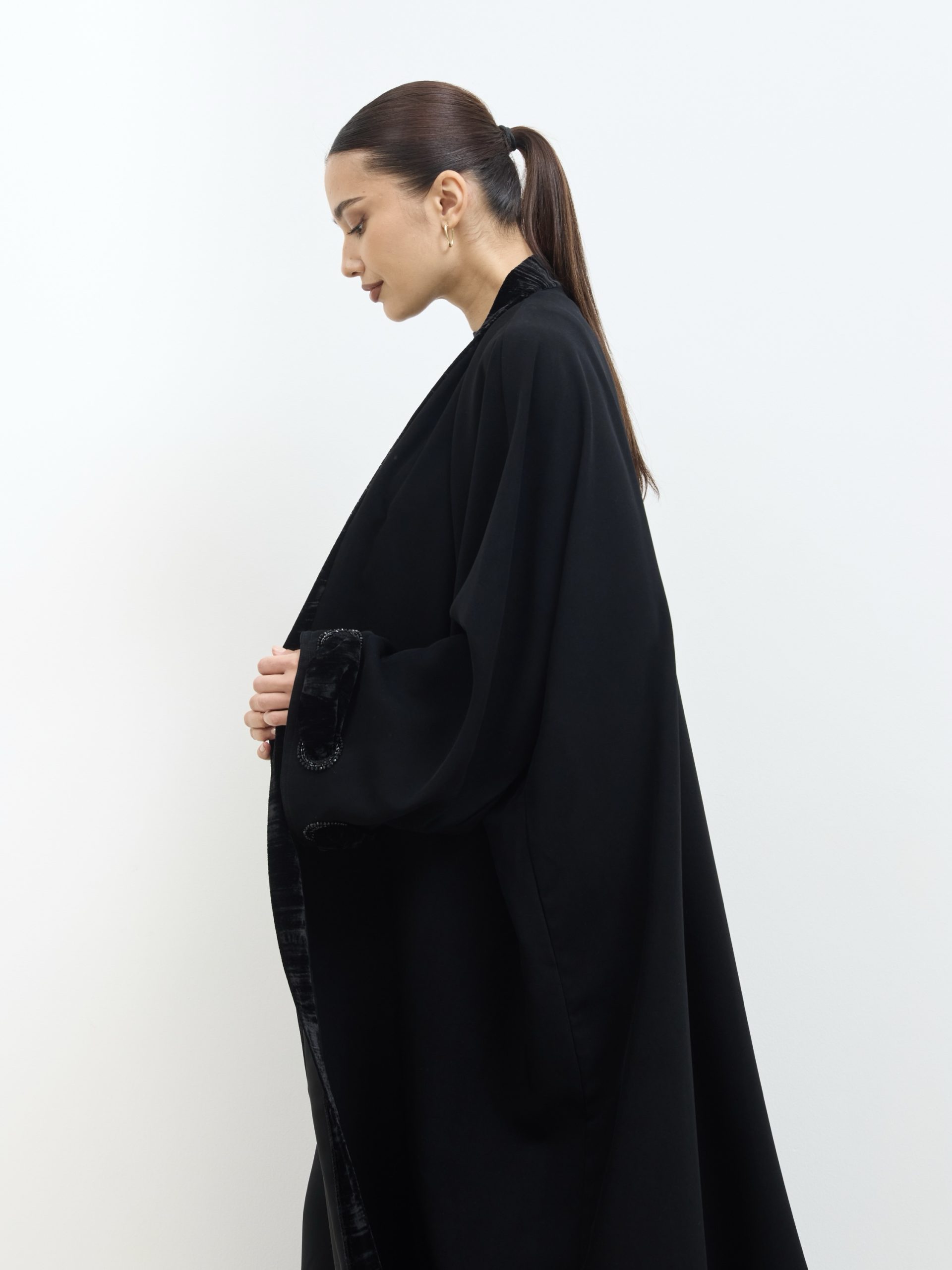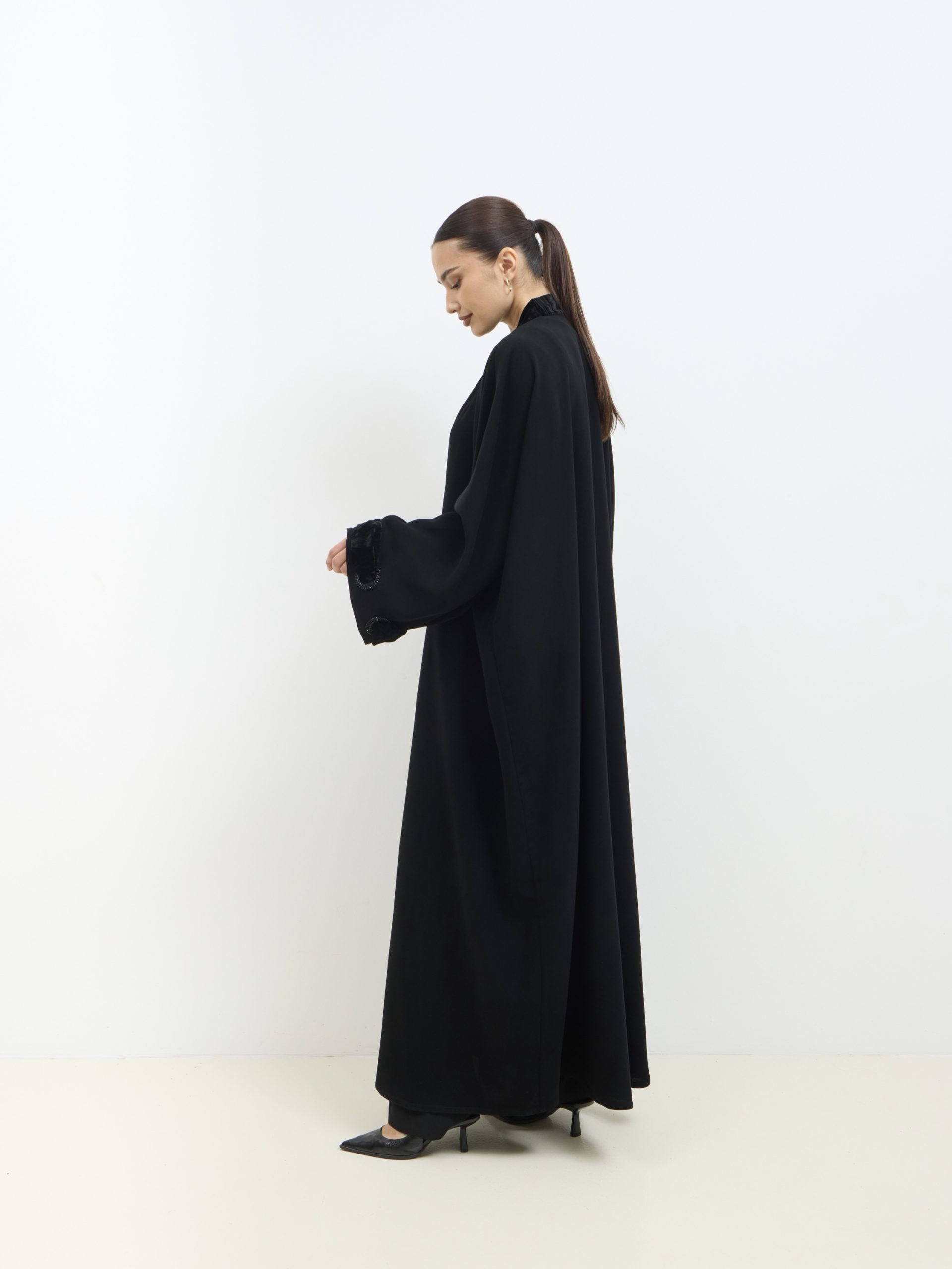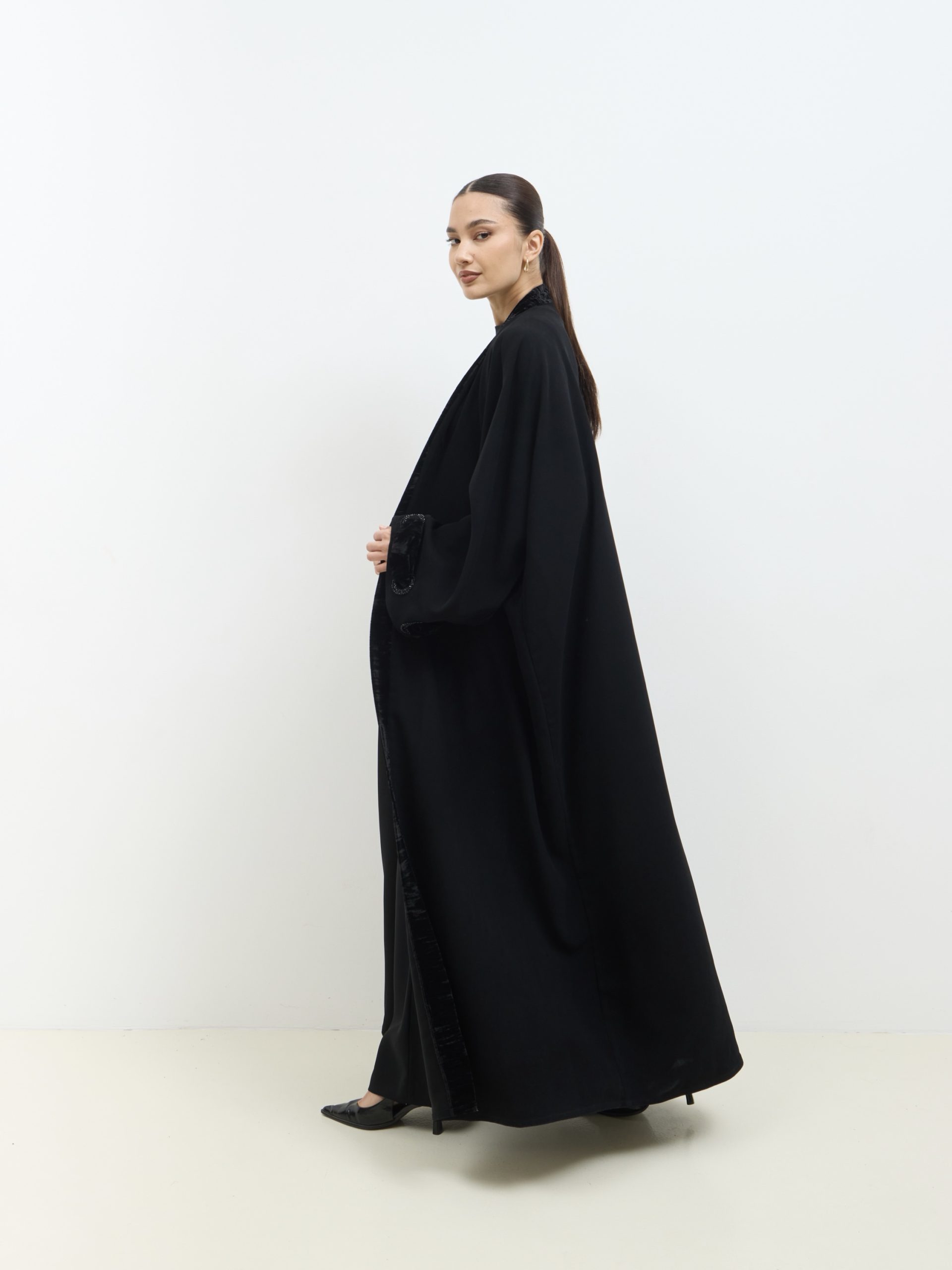 عباية كوبرا فيتنامي نص فراشة، بحواف مخمل ولمسات شك وخرز ناعمة، أنيقة وراقية للمناسبات.